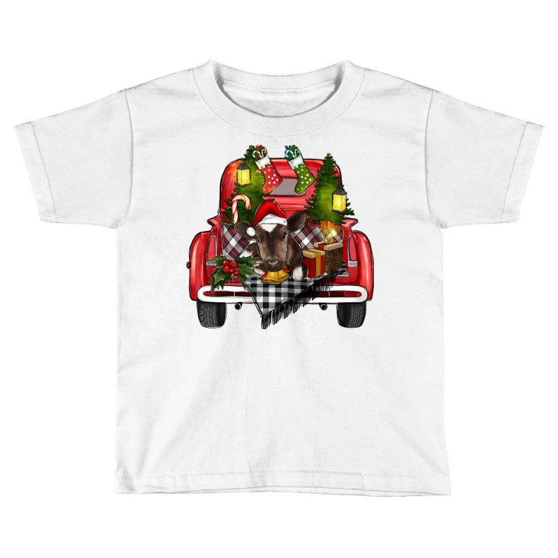 Digital printing is an amazing process that involves your artwork “Baby Cow Christmas” being processed by a computer and then printed directly onto the surface of your product. Digital printing is not a heat transfer or applique, as the ink directly adheres to the fabric of your shirt. Each printing process has its strengths, and our artwork team will weigh these when deciding which to use for your art.