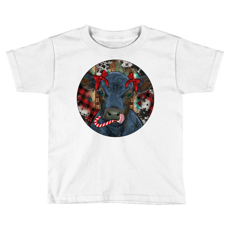 Digital printing is an amazing process that involves your artwork “Black Angus Calf Christmas” being processed by a computer and then printed directly onto the surface of your product. Digital printing is not a heat transfer or applique, as the ink directly adheres to the fabric of your shirt. Each printing process has its strengths, and our artwork team will weigh these when deciding which to use for your art.