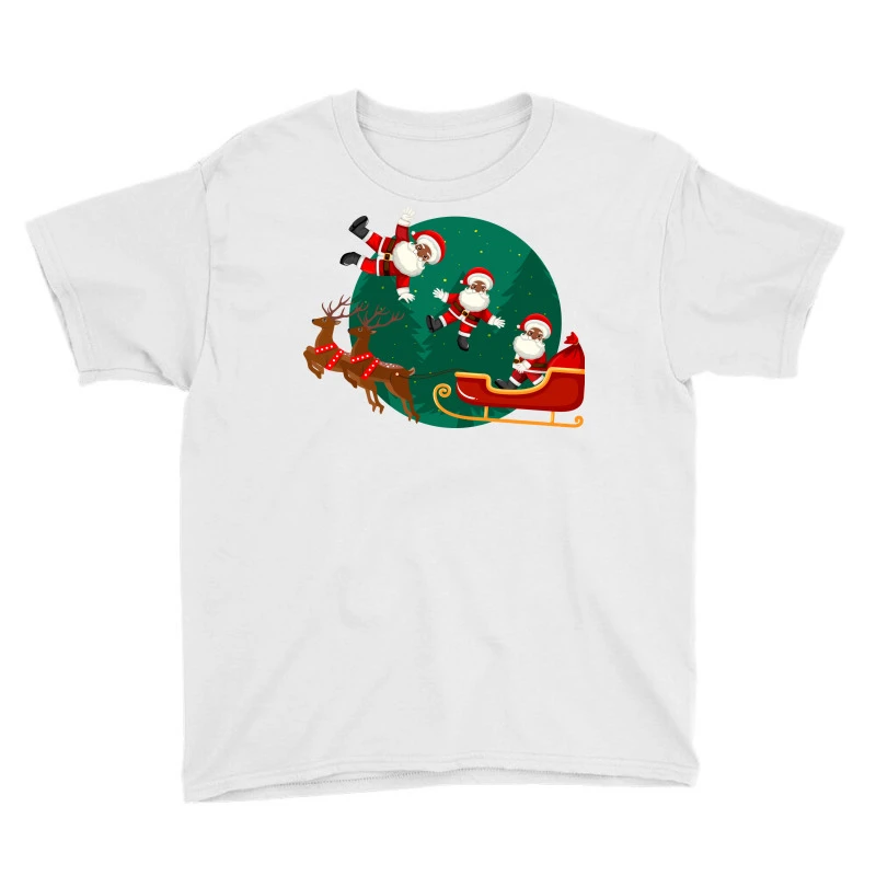 Digital printing is an amazing process that involves your artwork “Black Man Santa Claus Christmas” being processed by a computer and then printed directly onto the surface of your product. Digital printing is not a heat transfer or applique, as the ink directly adheres to the fabric of your shirt. Each printing process has its strengths, and our artwork team will weigh these when deciding which to use for your art.