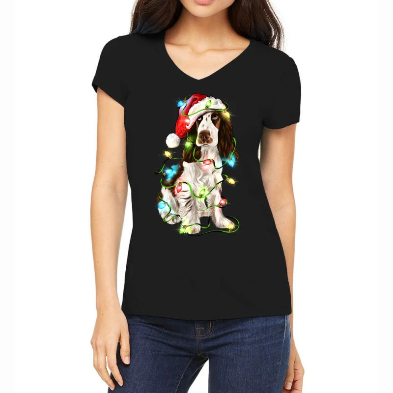Digital printing is an amazing process that involves your artwork “Christmas English Cocker Spaniel” being processed by a computer and then printed directly onto the surface of your product. Digital printing is not a heat transfer or applique, as the ink directly adheres to the fabric of your shirt. Each printing process has its strengths, and our artwork team will weigh these when deciding which to use for your art.