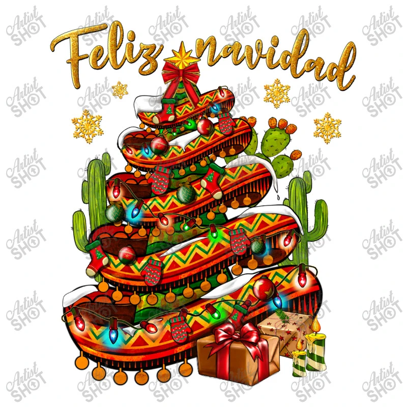 Digital printing is an amazing process that involves your artwork “Christmas Feliz Navidad” being processed by a computer and then printed directly onto the surface of your product. Digital printing is not a heat transfer or applique, as the ink directly adheres to the fabric of your shirt. Each printing process has its strengths, and our artwork team will weigh these when deciding which to use for your art.
