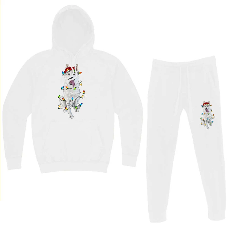Christmas White Shepherd With Christmas Lights Hoodie & Jogger Set