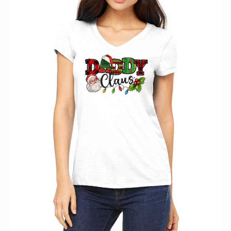 Digital printing is an amazing process that involves your artwork “Daddy Claus Santa Christmas Lights And Holly” being processed by a computer and then printed directly onto the surface of your product. Digital printing is not a heat transfer or applique, as the ink directly adheres to the fabric of your shirt. Each printing process has its strengths, and our artwork team will weigh these when deciding which to use for your art.