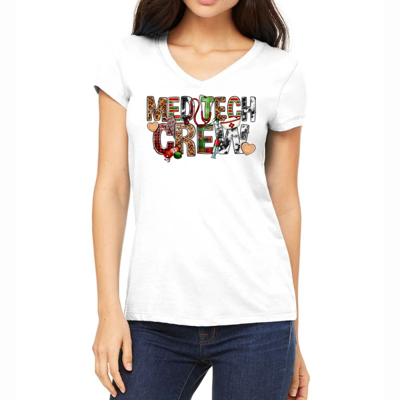 Med Tech Crew Nurse Christmas Women’s V-Neck T-Shirt