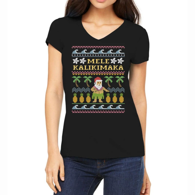 Digital printing is an amazing process that involves your artwork “Mele Kalikimaka Christmas” being processed by a computer and then printed directly onto the surface of your product. Digital printing is not a heat transfer or applique, as the ink directly adheres to the fabric of your shirt. Each printing process has its strengths, and our artwork team will weigh these when deciding which to use for your art.