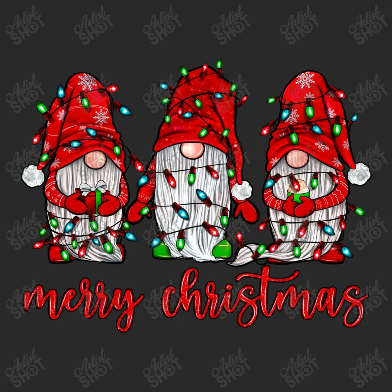 Digital printing is an amazing process that involves your artwork “Merry Christmas Gnome With Christmas Lights” being processed by a computer and then printed directly onto the surface of your product. Digital printing is not a heat transfer or applique, as the ink directly adheres to the fabric of your shirt. Each printing process has its strengths, and our artwork team will weigh these when deciding which to use for your art.