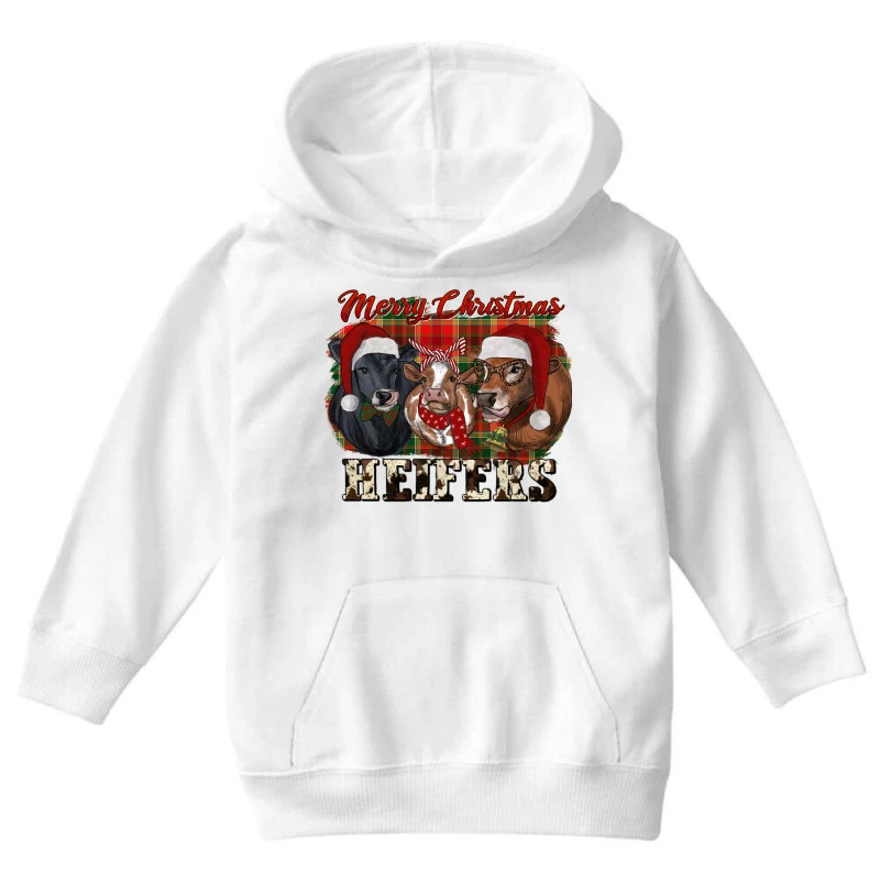 Digital printing is an amazing process that involves your artwork “Merry Christmas Heifers” being processed by a computer and then printed directly onto the surface of your product. Digital printing is not a heat transfer or applique, as the ink directly adheres to the fabric of your shirt. Each printing process has its strengths, and our artwork team will weigh these when deciding which to use for your art.
