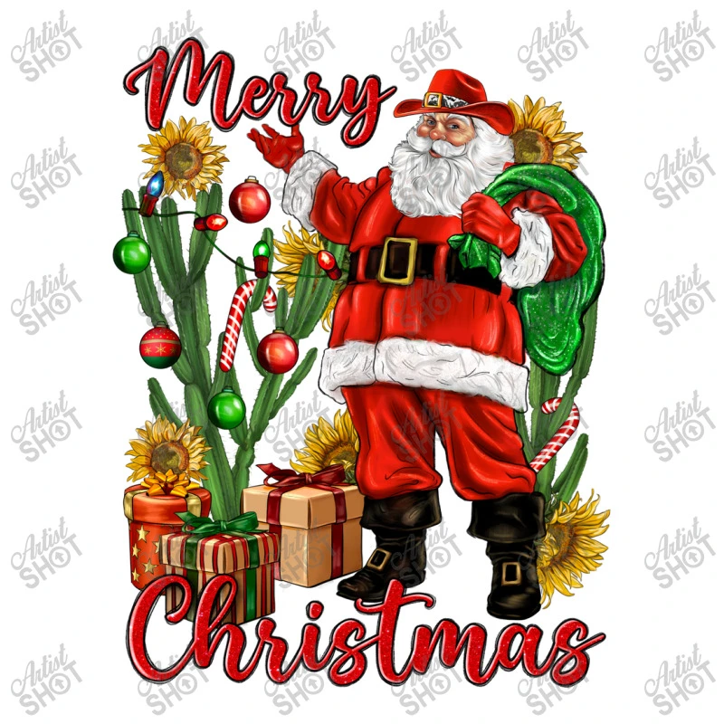 Digital printing is an amazing process that involves your artwork “Merry Christmas With Santa” being processed by a computer and then printed directly onto the surface of your product. Digital printing is not a heat transfer or applique, as the ink directly adheres to the fabric of your shirt. Each printing process has its strengths, and our artwork team will weigh these when deciding which to use for your art.