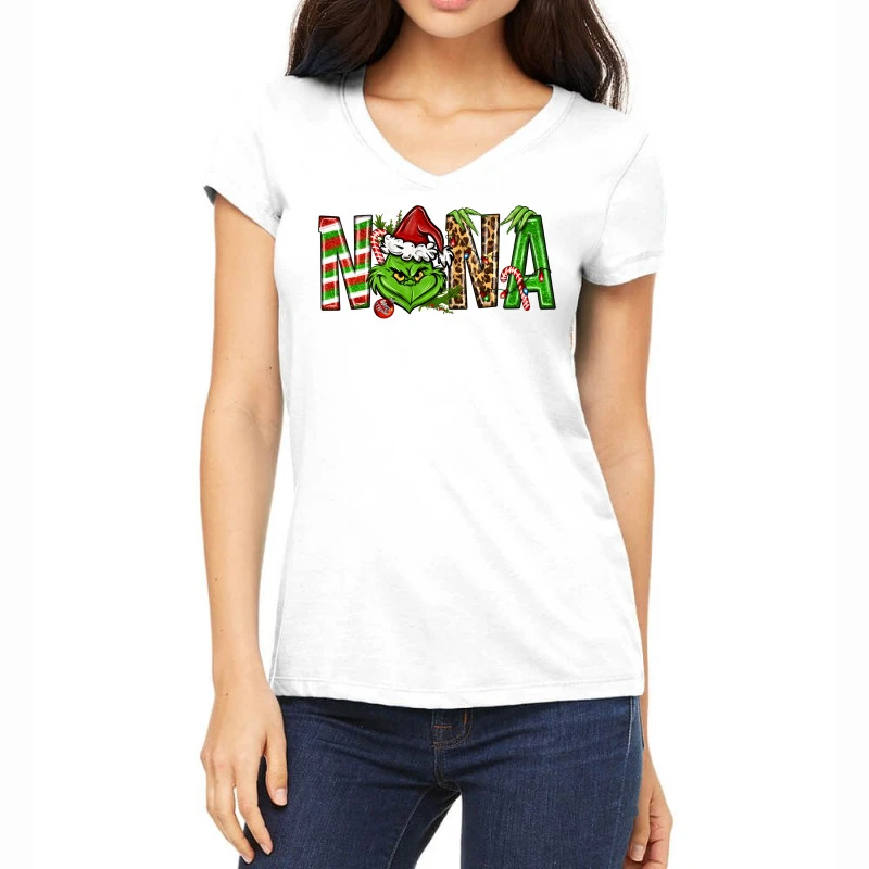 Digital printing is an amazing process that involves your artwork “Nana Grinch Christmas” being processed by a computer and then printed directly onto the surface of your product. Digital printing is not a heat transfer or applique, as the ink directly adheres to the fabric of your shirt. Each printing process has its strengths, and our artwork team will weigh these when deciding which to use for your art.