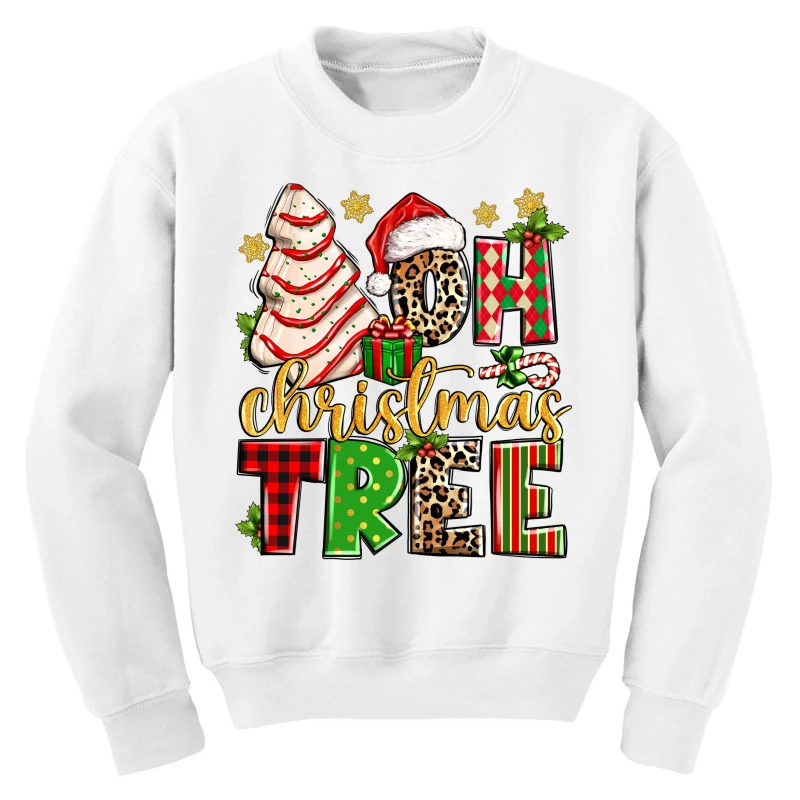 Plot Printing Consists of both Flock and Flex Print, This process transfers your artwork “Oh Christmas Tree”