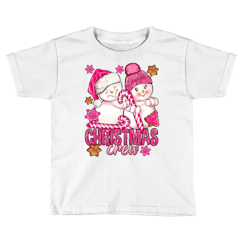 Digital printing is an amazing process that involves your artwork “Pink Christmas Crew Snowman” being processed by a computer and then printed directly onto the surface of your product. Digital printing is not a heat transfer or applique, as the ink directly adheres to the fabric of your shirt. Each printing process has its strengths, and our artwork team will weigh these when deciding which to use for your art.