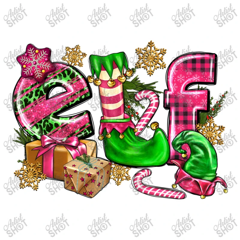 Digital printing is an amazing process that involves your artwork “Pink Christmas Elf” being processed by a computer and then printed directly onto the surface of your product. Digital printing is not a heat transfer or applique, as the ink directly adheres to the fabric of your shirt. Each printing process has its strengths, and our artwork team will weigh these when deciding which to use for your art.