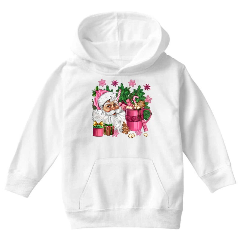 Digital printing is an amazing process that involves your artwork “Pink Christmas Hot Chocolate Coffee Cup With Santa” being processed by a computer and then printed directly onto the surface of your product. Digital printing is not a heat transfer or applique, as the ink directly adheres to the fabric of your shirt. Each printing process has its strengths, and our artwork team will weigh these when deciding which to use for your art.