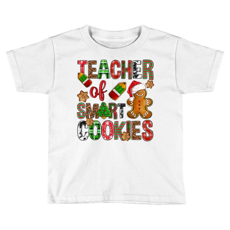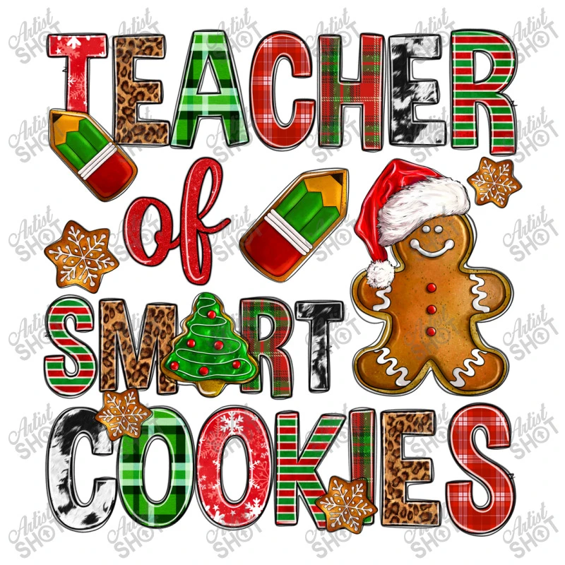 Digital printing is an amazing process that involves your artwork “Teacher Of Smart Cookies Christmas” being processed by a computer and then printed directly onto the surface of your product. Digital printing is not a heat transfer or applique, as the ink directly adheres to the fabric of your shirt. Each printing process has its strengths, and our artwork team will weigh these when deciding which to use for your art.